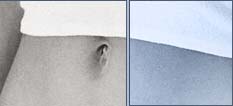 die Haut nur zwischen dem Nabel und der Einschnittstelle gestrafft.